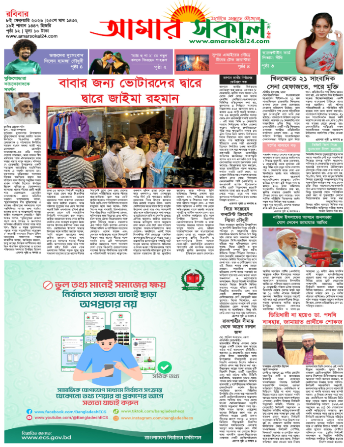 রোববার, ০৮ ফেব্রুয়ারী ২০২৬
